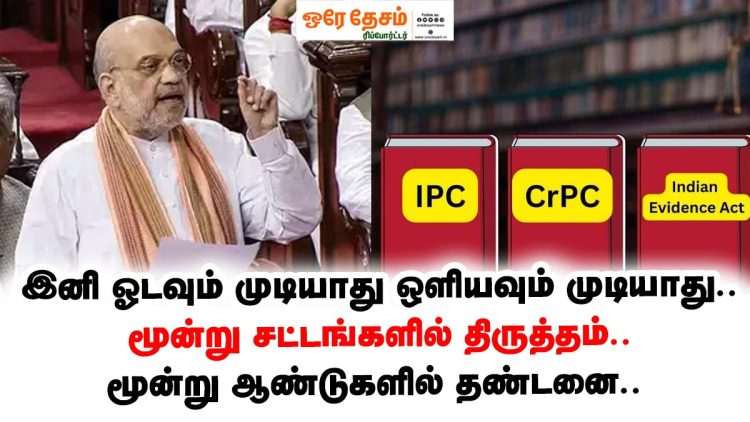 பிரிட்டிஷார் ஆட்சி காலத்தில் கொண்டுவரப்பட்ட குற்றவியல் சட்டங்களை திருத்தும் வகையில் மத்திய உள்துறை அமைச்சர் அமித் ஷா நேற்றைய தினம் மூன்று மசோதாக்களை, பாராளுமன்றத்தில் தாக்கல் செய்தார். இந்த மசோதாக்கள் குற்றவியல் நீதி அமைப்பில் மிகப் பெரிய மாற்றத்தை ஏற்படுத்தவுள்ளது. திருத்தியமைக்கப்பட்ட மூன்று மசோதாக்களும், நாடாளுமன்ற நிலைக்குழுவின் ஒப்புதலுக்கு அனுப்பி வைக்கப்பட்டுள்ளது.