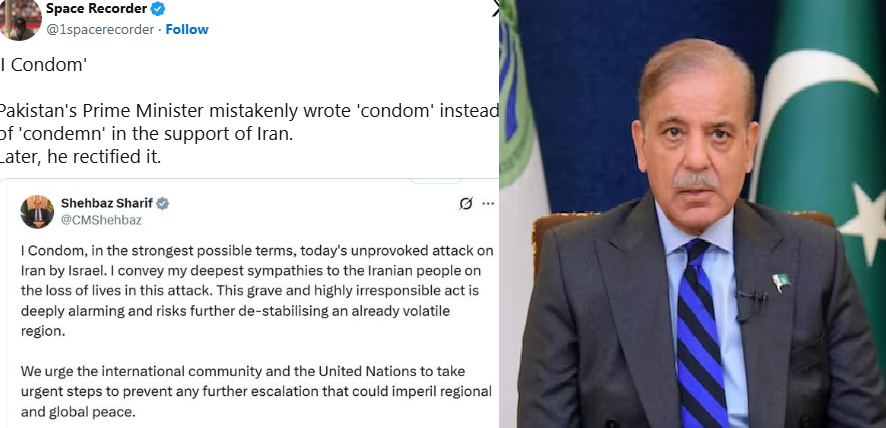 ஷெபாஸ் ஷெரீப் தனது சமூக வலைத்தளப் பதிவில், “I condemn” (நான் கண்டிக்கிறேன்) என்பதற்குப் பதிலாக “I condom” (நான் காண்டம்) என்று தவறுதலாக தட்டச்சு செய்ததாக ஒரு ஸ்கிரீன்ஷாட் காட்டுத் தீயாகப் பரவியது. இஸ்ரேலின் தாக்குதலை கண்டனம் செய்யும் நோக்கில் எழுதப்பட்ட இந்தப் பதிவு, உடனே இணையத்தில் விவாதங்களையும், எண்ணற்ற மீம்களையும் அள்ளிவிட்டது. “பாகிஸ்தான் பிரதமர் ஈரானுக்கு ஆதரவாக ‘கண்டனம்’ என்பதற்கு பதிலாக ‘காண்டம்’ என்று தவறுதலாக எழுதினார். பின்னர் அவர் அதை சரிசெய்தார்,” என்று ஒரு பயனர் ஸ்கிரீன்ஷாட்டுடன் பதிவிட்டிருந்தார்.